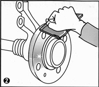 Oczyścić powierzchnię styku piasty z tarczą za pomocą odpowiednich narzędzi. Powierzchnie muszą być całkowicie czyste (metalicznie jasne), bez zadziorów i wolne od korozji (patrz rys. 2)